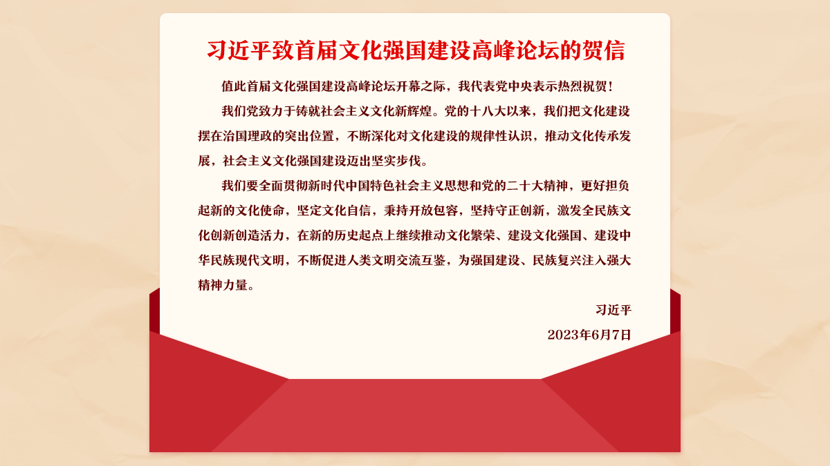 習(xí)近平致信祝賀首屆文化強國建設(shè)高峰論壇開幕強調(diào)