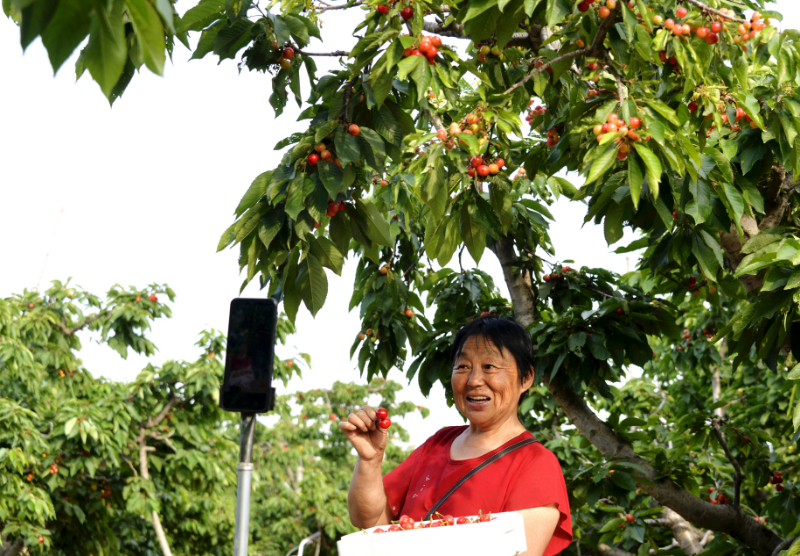 姜庄村种植户线上直播销售樱桃。