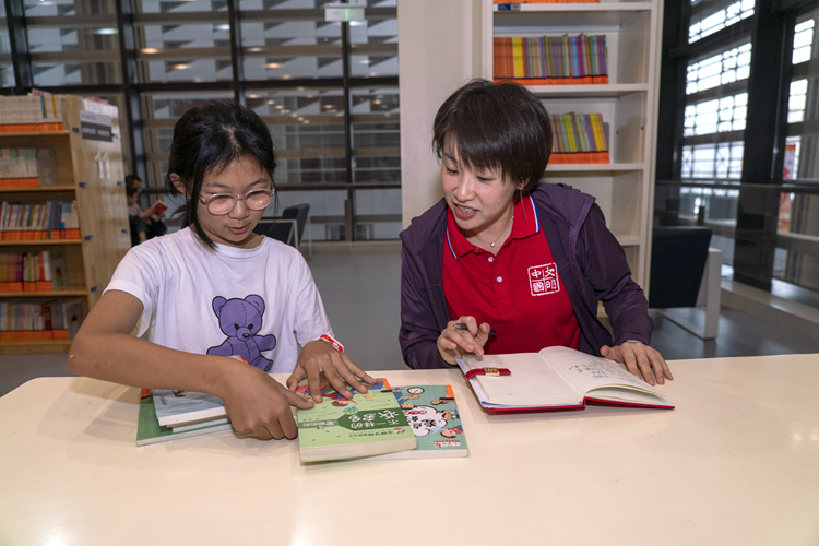 此外,场馆中穿着蓝色马甲、胸前带着红飘带的小同学们吸引了记者的目光。据场馆负责人介绍,这是图书馆最具特色的“小小志愿者”,小志愿者们在接受上岗前的培训和指导后,为游客读者介绍讲解图书馆设施、引导服务读者参观阅览、协助图书馆工作人员整理摆放书籍等志愿服务。
