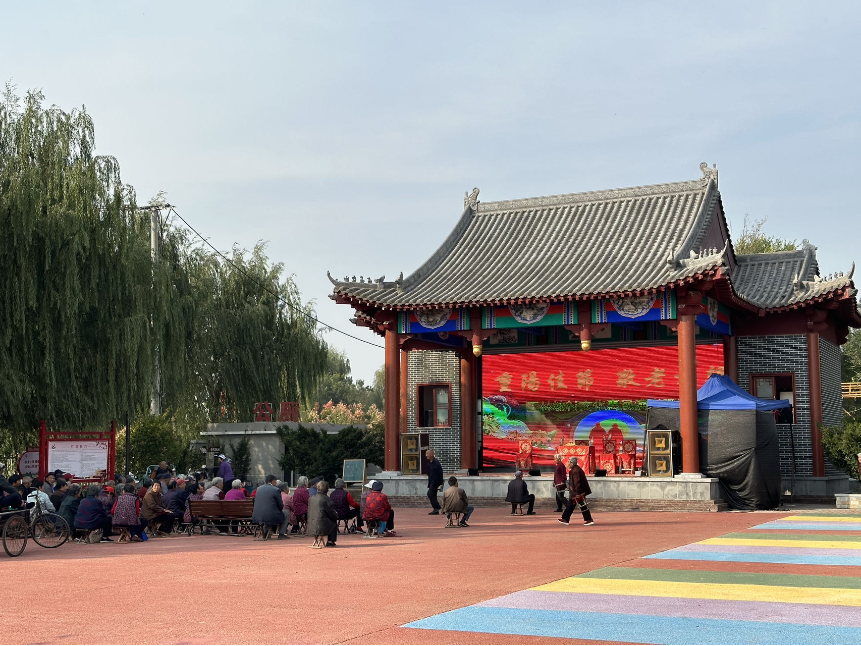 近日,在山东省泰安市泰山区邱家店镇王林坡村的广场上,村民们正在观看演出。(泰安市文明办供图)