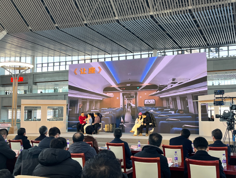 在活动现场,“我的铁路风景”主题宣传活动介绍片吸引过往旅客纷纷驻足观看;情景剧《让座》通过展现高铁车厢里旅客礼让座位的温馨场景,传达出浓浓的文明礼让新风;歌舞《坐着高铁看中国》再现了旅客坐着高铁享受美好生活的场景,表达了新时代人民群众满满的获得感、幸福感和安全感。