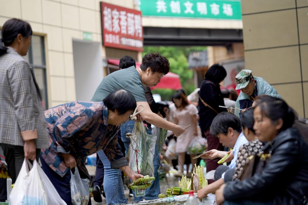 2025年5月23日,市民在贵州省龙里县农贸市场设立的便民早市选购蔬菜。(王立信 摄)