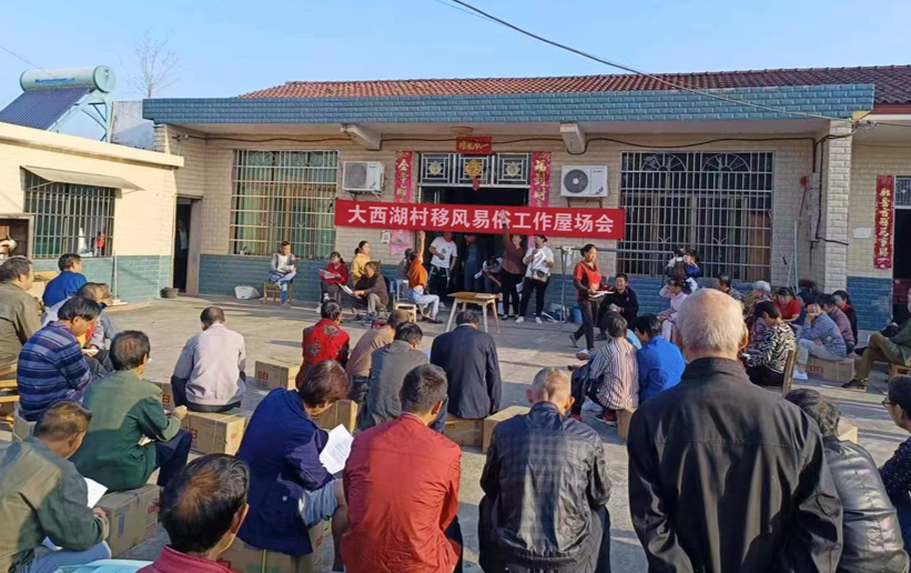 益阳市大通湖管理区千山红镇大西湖村举办移风易俗工作屋场会。(益阳市文明办供图)