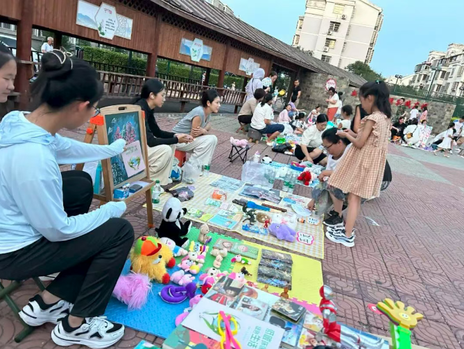 闲“愉”市集里,孩子们化身“小掌柜”,抱着闲置的玩具、书籍坐在摊位后,稚嫩的吆喝声此起彼伏:“这本绘本特别好看,只要5块钱!”“这个机器人能唱歌,10块钱带回家!”居民张女士带着女儿来义卖,母女俩把收入全部存入社区基金账户:“孩子的玩具堆成山,扔了可惜,能帮到社区公益,特别有意义。”截至目前,已有40余户家庭参与市集,社区基金用这些钱为困难居民购置生活用品,购置积分兑换礼品,为社区活动添置物资,让爱心在邻里间流转。