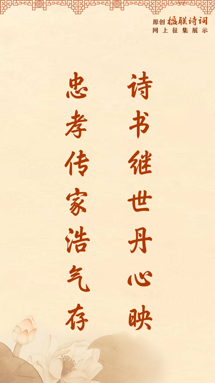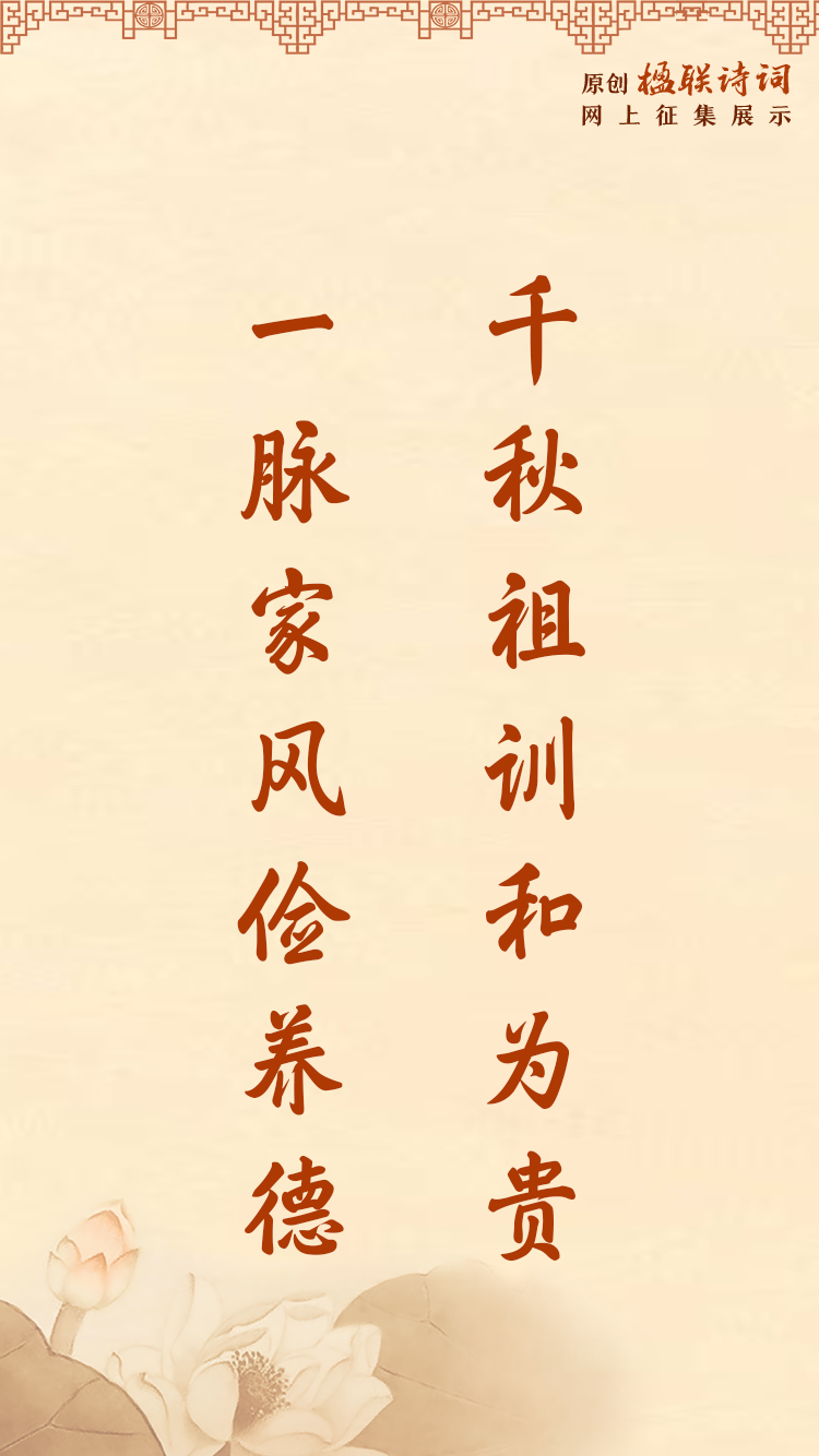 #原創(chuàng)楹聯(lián)詩(shī)詞網(wǎng)上征集展示活動(dòng)# 以詩(shī)會(huì)友,以聯(lián)傳情!行動(dòng)起來(lái)!共同弘揚(yáng)中華民族傳統(tǒng)家庭美德,共建家庭文明良好風(fēng)尚。